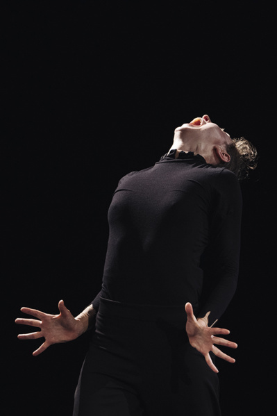 Dès lors, tout en improvisant des figures chorégraphiées, un premier poème où se mêlent dans plusieurs langues, champ de bataille, tête arrachée, corps dévoré, air avalé et déchirure de l'angoisse, s'élève comme un chant venu des entrailles. Pêle-mêle, des éclats d'une cruauté sans nom fusent. Et ce, jusqu'à l'explosion des lumières et de la musique consacrant un cri de triomphe libérateur.