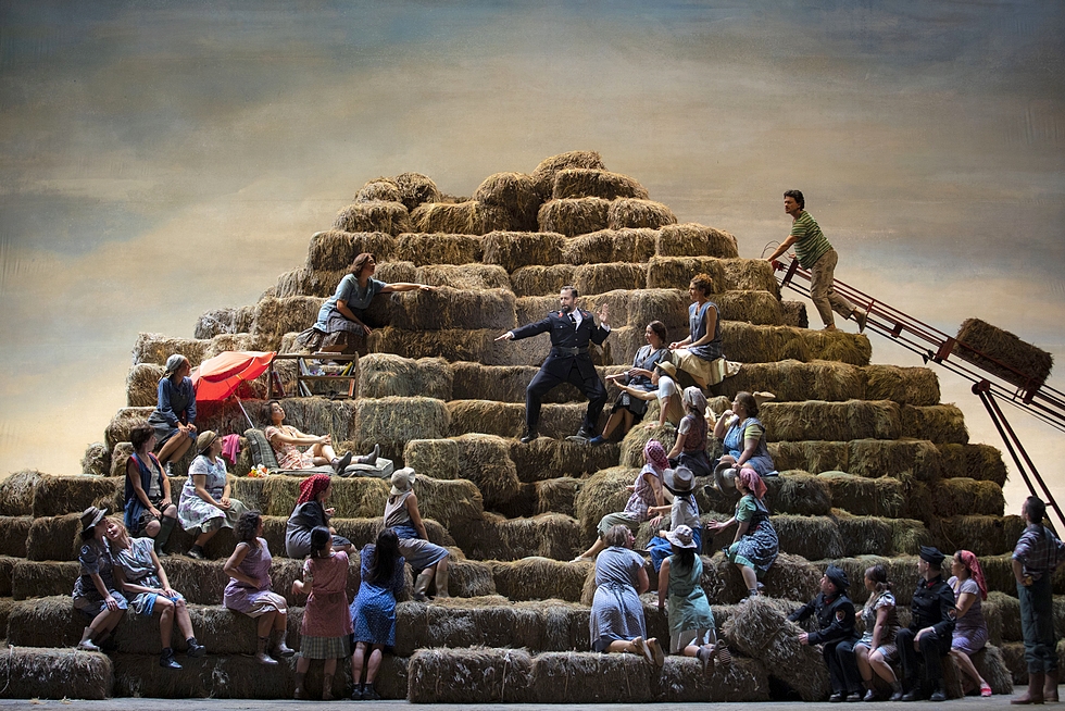 Il est des œuvres qui rencontrent un jour le metteur en scène qui fixe pour longtemps leur proposition scénique idéale. Cet "Elisir d'amore" bucolique transposé dans une campagne qui semble tout droit sortie d'une comédie italienne ("Pain, amour et fantaisie" de Luigi Comencini selon l'aveu même de Laurent Pelly) en est un exemple brillant. On n'a guère envie aujourd'hui d'imaginer un autre écrin pour cet "opera buffa", œuvre superbe de gaieté et d'ironie légère, conçue en 1832 par un compositeur dont la vie aurait pu inspirer quelques décennies plus tard à un Zola un de ses romans naturalistes tristes à pleurer.