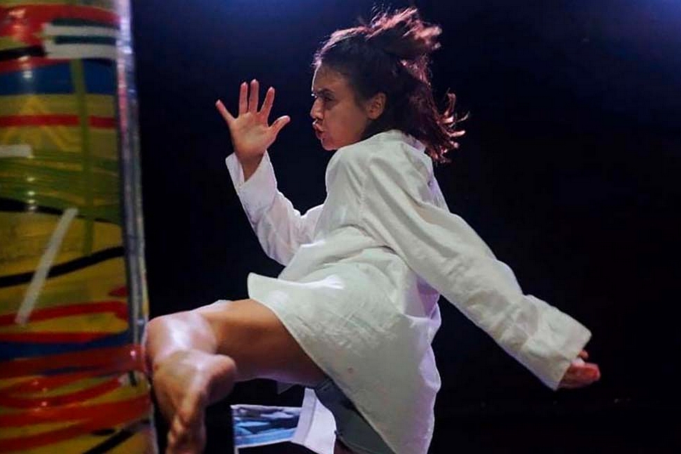 Seule en scène engagée.