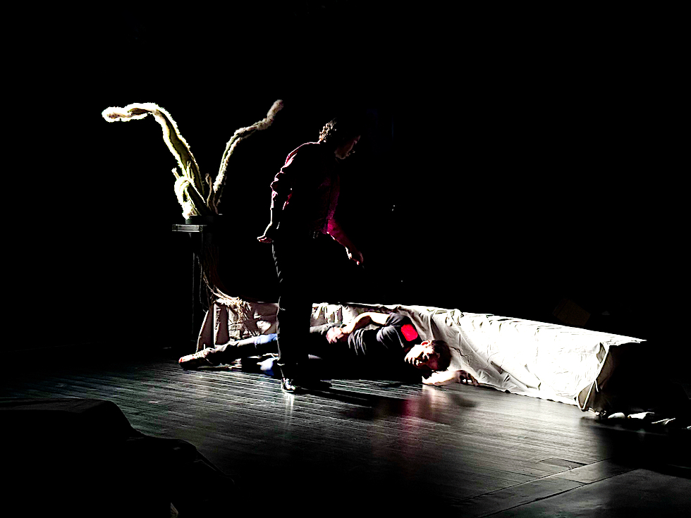 Dans la scénographie, le choix de la couleur rouge fortement présente, appuyée par la gestuelle de Rhéda Benteifour pour les deux comédiens et la comédienne, ainsi que les musiques de Catherine Lara, ne sont pas sans rappeler le domaine d'une arène dans laquelle la "mise à mort" va se jouer sans concession. Mais qui est le toréador, au juste ? Qui est le taureau ?