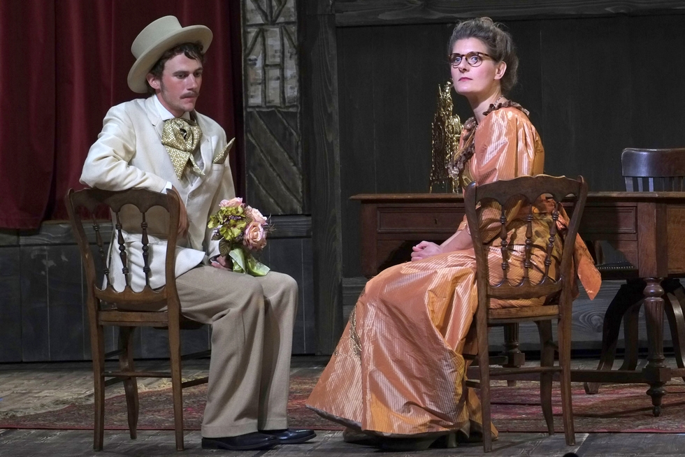 L'utilisation du fond de scène ouvrant par Vincent Goethals est bluffante de beauté et de pertinence (voir photo). Dans le cadre naturel au hêtre centenaire, kiosque à musique en premier plan et, en plan forestier, déambulation musicale, vocale et festive en célébration de mariage. Usant de l'intelligente union entre opérette et vaudeville, les artistes confirmés ou non chantent et jouent au diapason, avec un plaisir non feint et communicatif, soutenus par une petite formation orchestrale guillerette et efficace, tous ensemble officiant dans le but avéré de divertir.